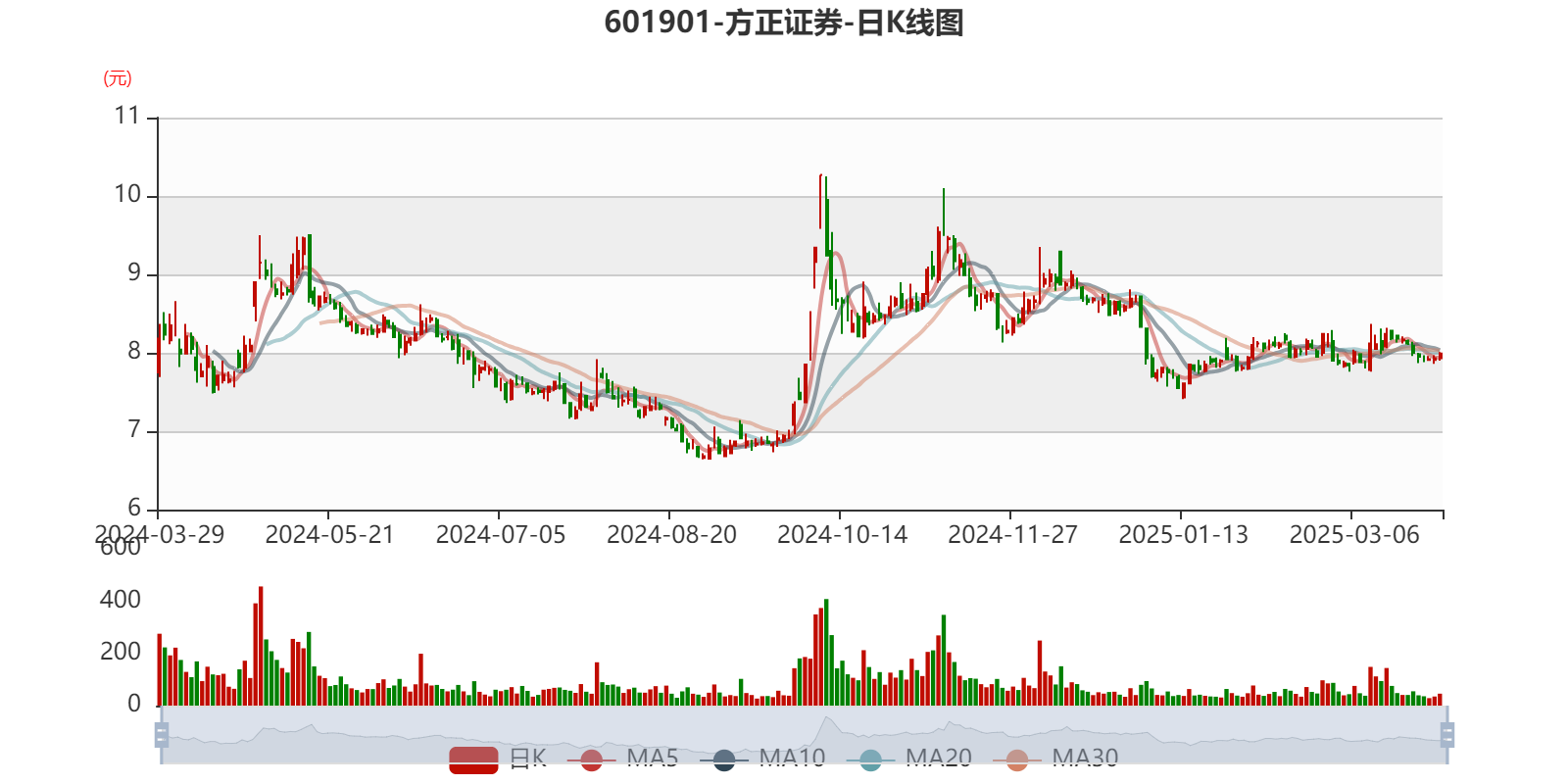 以3月28日收盘价计算,方正证券目前市盈率(TTM)约为29.8倍,市净率(LF)约1.37倍,市销率(TTM)约8.52倍。