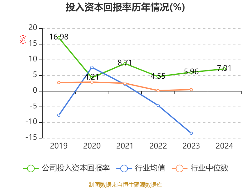 数据显示,2024年公司加权平均净资产收益率为8.21%,较上年同期上升0.62个百分点。公司2024年投入资本回报率为7.01%,较上年同期上升1.05个百分点。