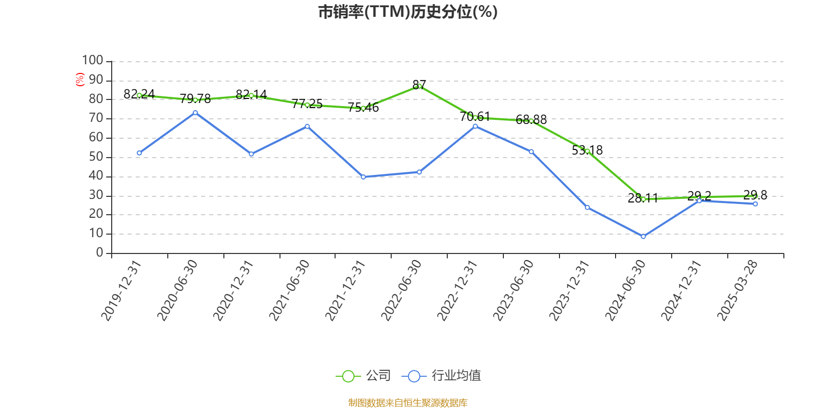 市盈率、市净率为负时,不显示当期分位数,会导致折线图中断。