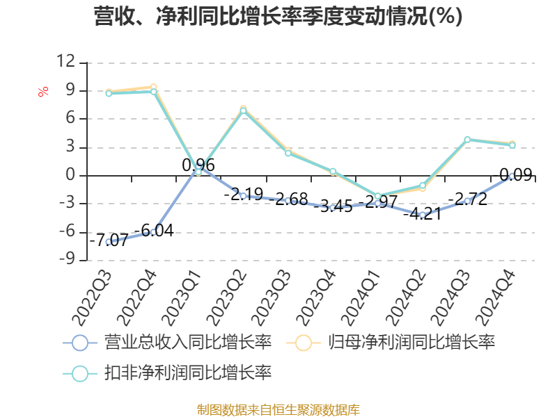 数据显示,2024年公司加权平均净资产收益率为10.69%,较上年同期下降0.87个百分点。