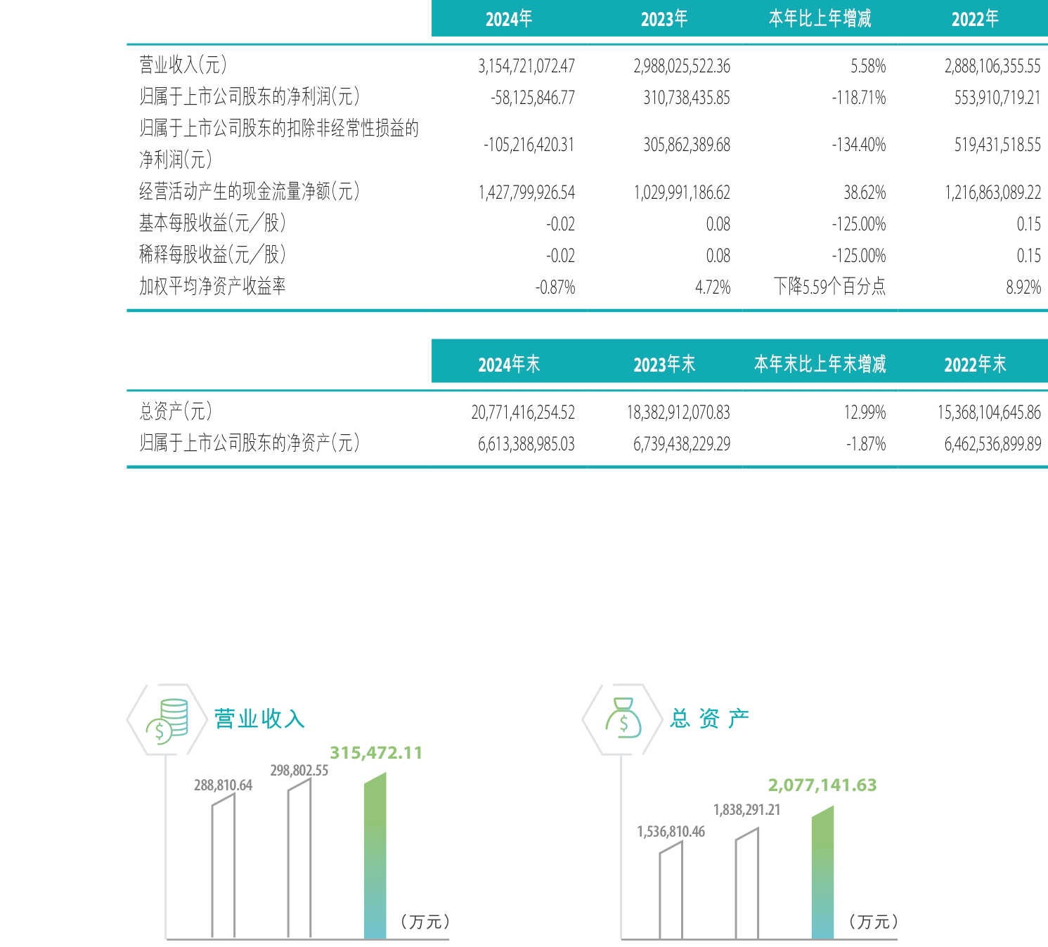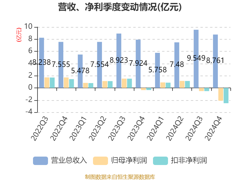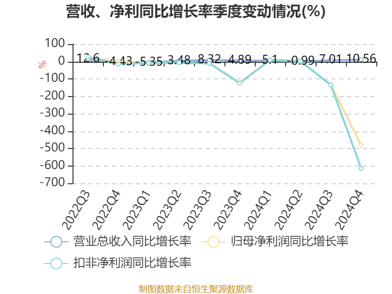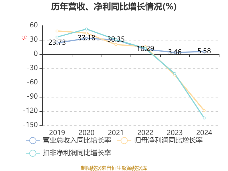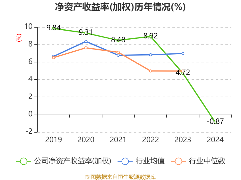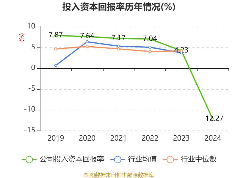 数据显示,2024年公司加权平均净资产收益率为-0.87%,较上年同期下降5.59个百分点。公司2024年投入资本回报率为-12.27%,较上年同期下降16.5个百分点。
