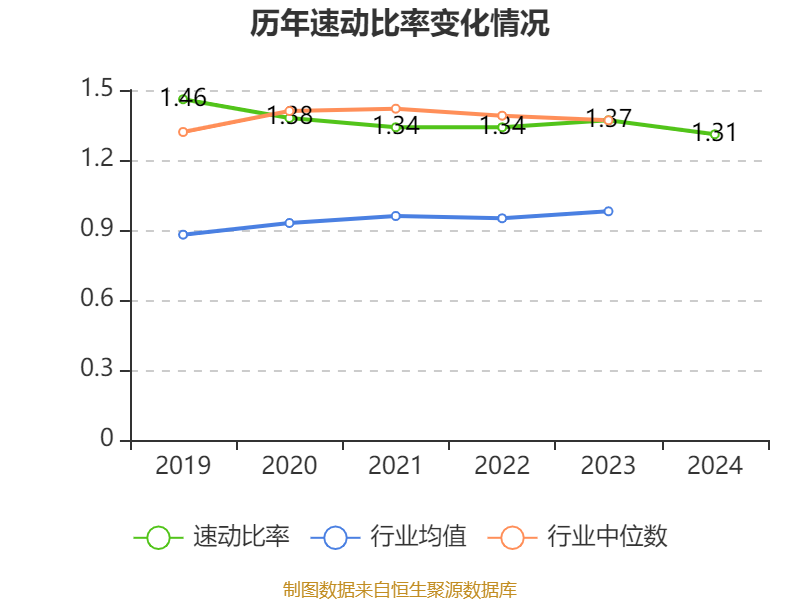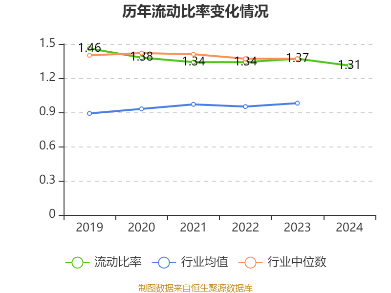 2024年,公司流动比率为1.31,速动比率为1.31。