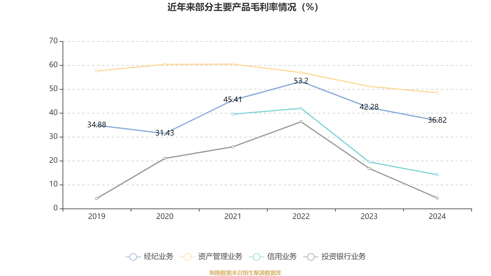 负债重大变化方面,截至2024年末,公司卖出回购金融资产款较上年末增加210.99%,占公司总资产比重上升7.58个百分点;一年内到期的非流动负债较上年末减少47.18%,占公司总资产比重下降6.5个百分点;代理买卖证券款较上年末增加30.4%,占公司总资产比重上升5.43个百分点;应付债券较上年末减少15.58%,占公司总资产比重下降3.36个百分点。