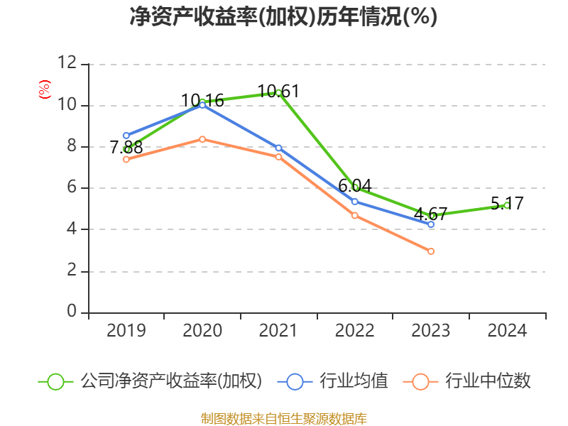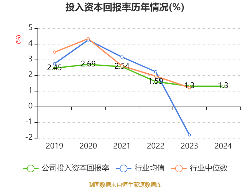 数据显示,2024年公司加权平均净资产收益率为5.17%,较上年同期上升0.5个百分点。公司2024年投入资本回报率为1.3%,较上年同期持平。