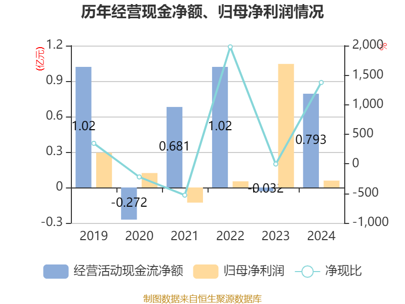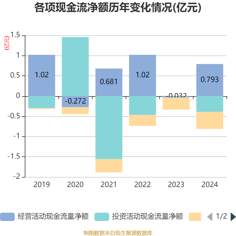 截至2024年,公司经营活动现金流净额为7925.84万元,同比增加8249.27万元;筹资活动现金流净额-4244.26万元,同比减少1239.03万元;投资活动现金流净额-3883.5万元,上年同期为57.58万元。