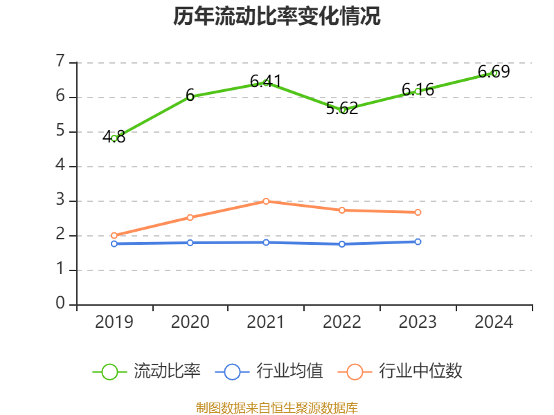2024年,公司流动比率为6.69,速动比率为4.16。