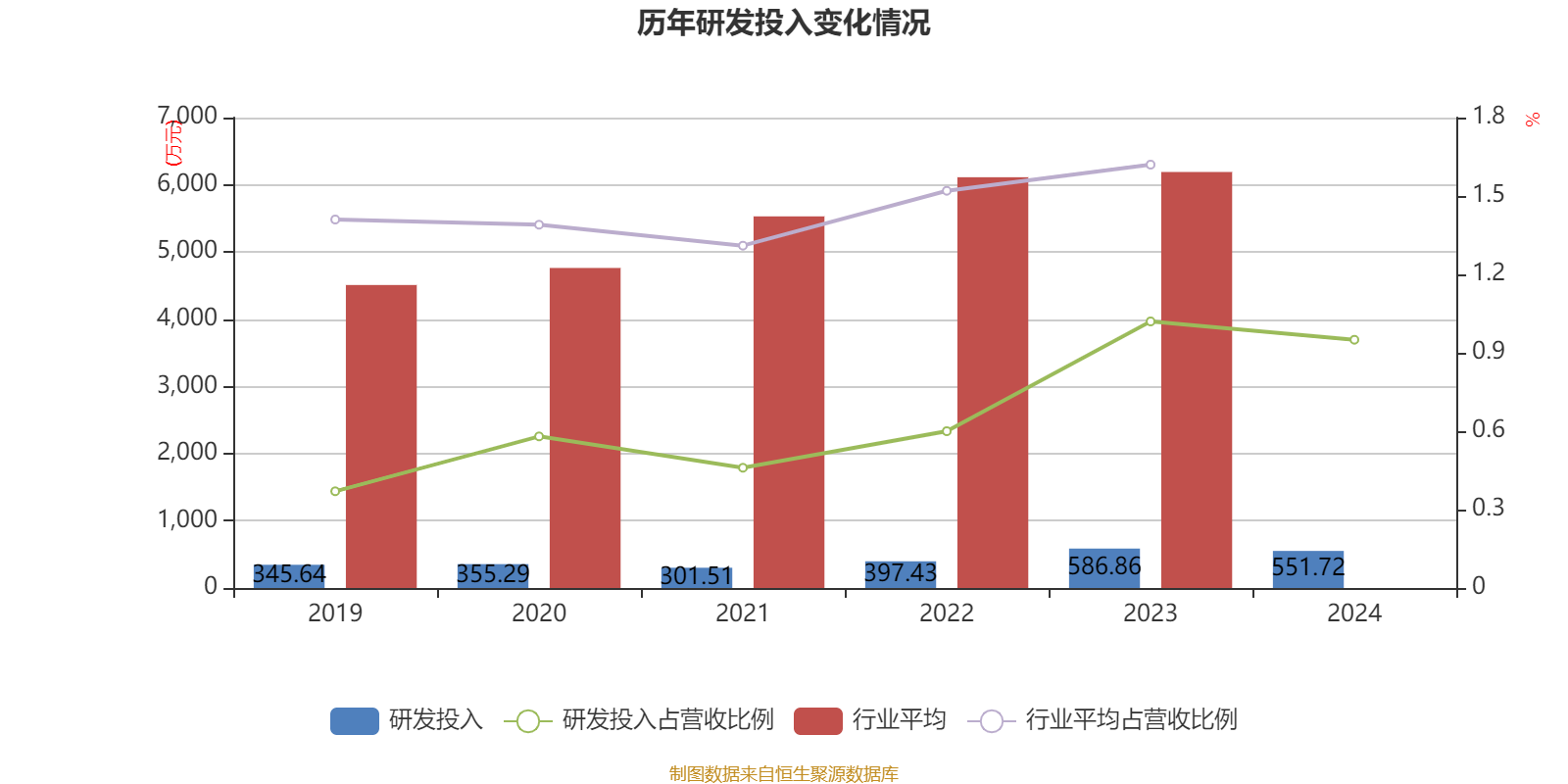 2024年全年,公司研发投入金额为551.72万元,同比下降5.99%;研发投入占营业收入比例为0.95%,相比上年同期下降0.07个百分点。此外,公司全年研发投入资本化率为0%。