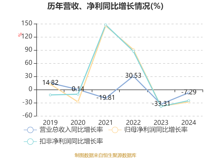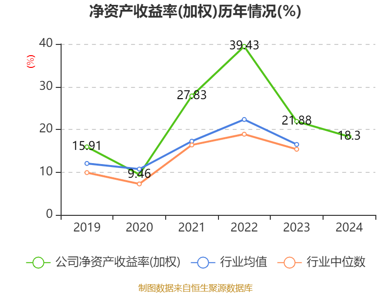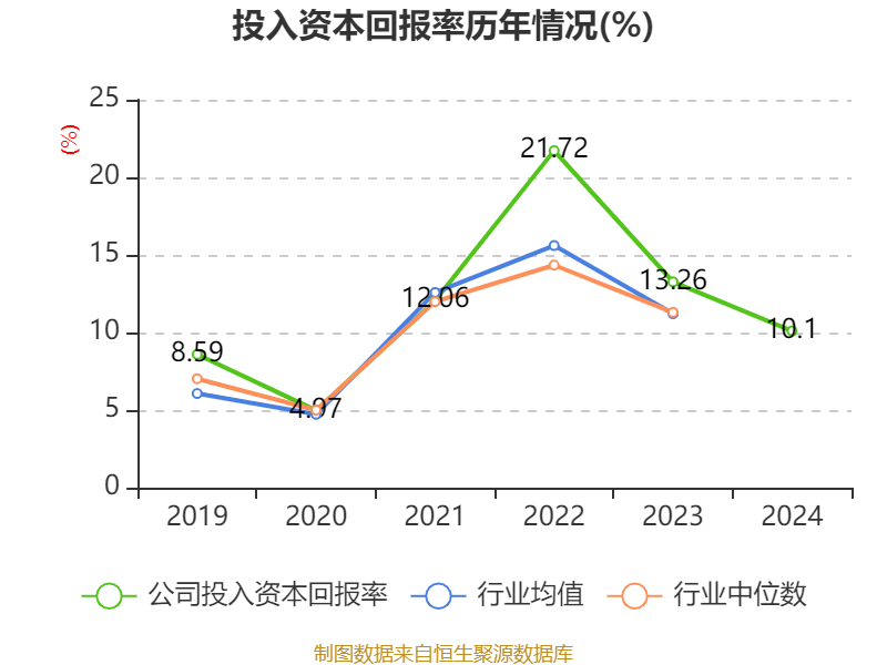 数据显示,2024年公司加权平均净资产收益率为18.3%,较上年同期下降3.58个百分点。公司2024年投入资本回报率为10.1%,较上年同期下降3.16个百分点。