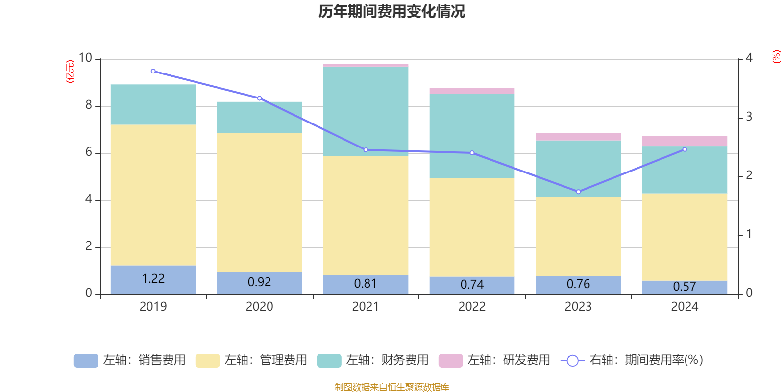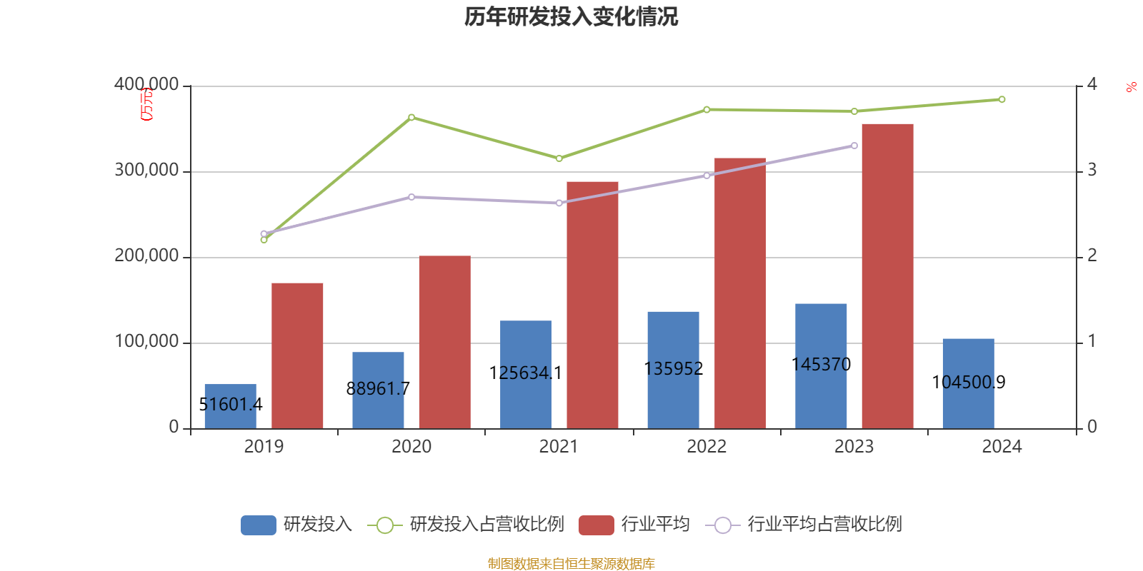 2024年全年,公司研发投入金额为10.45亿元,同比下降28.11%;研发投入占营业收入比例为3.84%,相比上年同期上升0.14个百分点。此外,公司全年研发投入资本化率为0%。