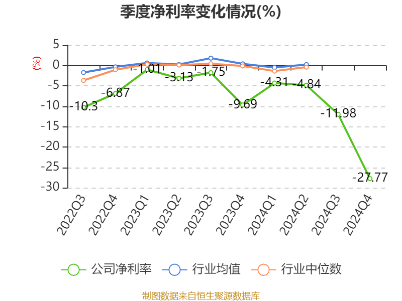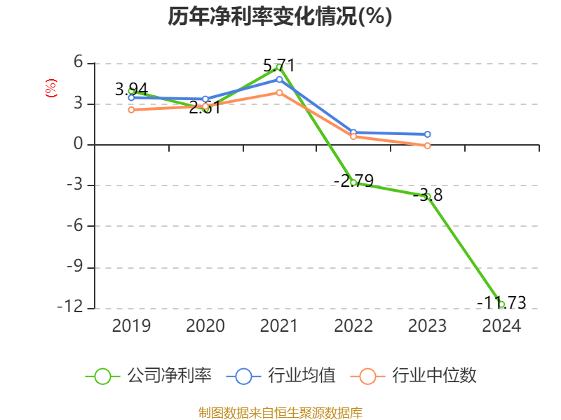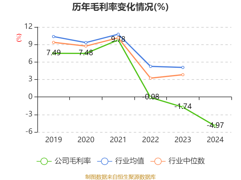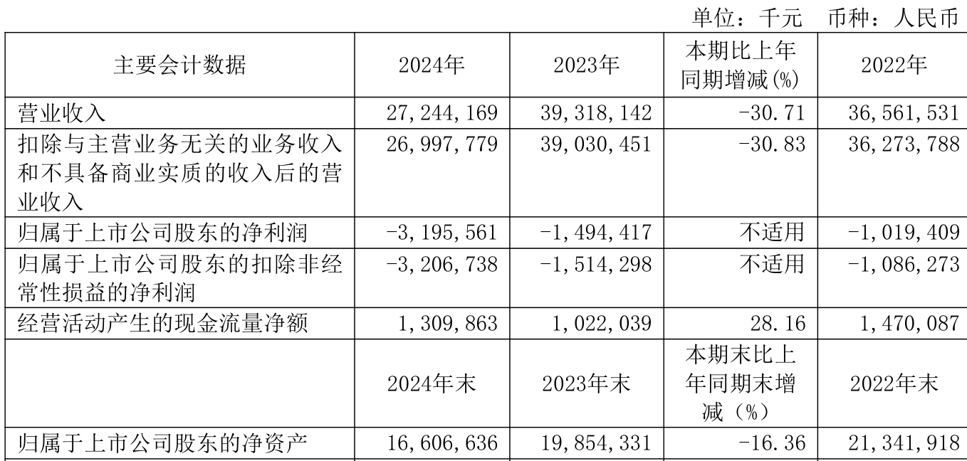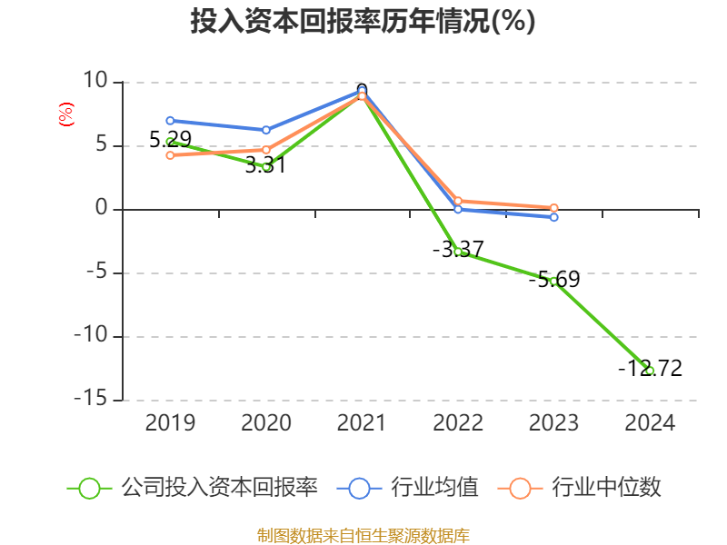 数据显示,2024年公司加权平均净资产收益率为-17.53%,较上年同期下降10.27个百分点。公司2024年投入资本回报率为-12.72%,较上年同期下降7.03个百分点。