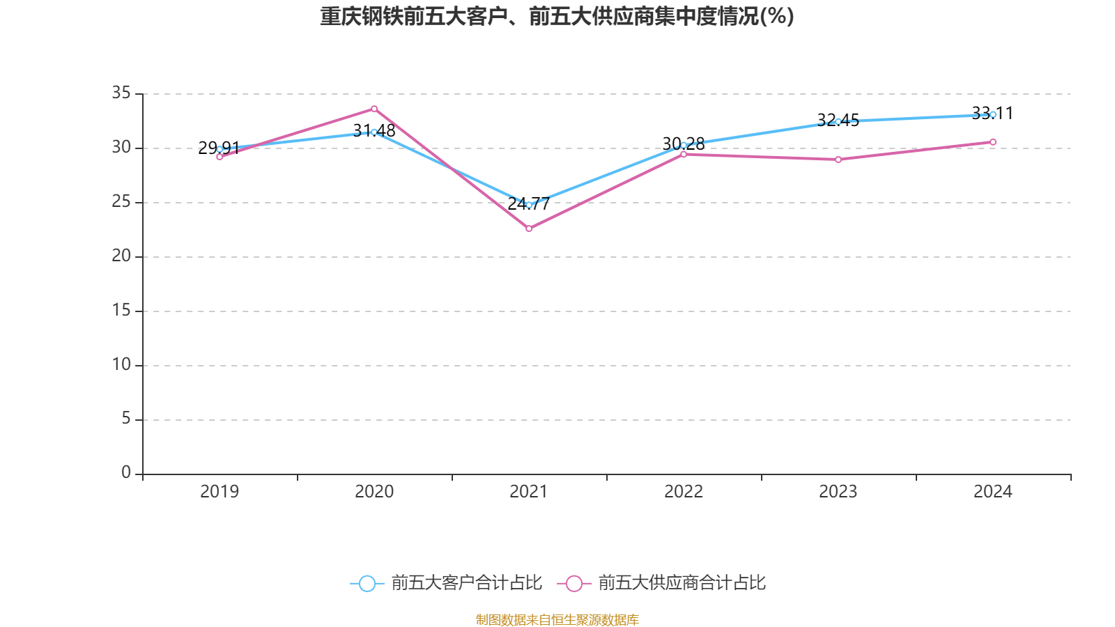 中证智能财讯重庆钢铁(601005)3月29日披露2024年年度报告。2024年,公司实现营业总收入272.44亿元,同比下降30.71%;归母净利润亏损31.96亿元,上年同期亏损14.94亿元;扣非净利润亏损32.07亿元,上年同期亏损15.14亿元;经营活动产生的现金流量净额为13.1亿元,同比增长28.16%;报告期内,重庆钢铁基本每股收益为-0.36元,加权平均净资产收益率为-17.53%。
