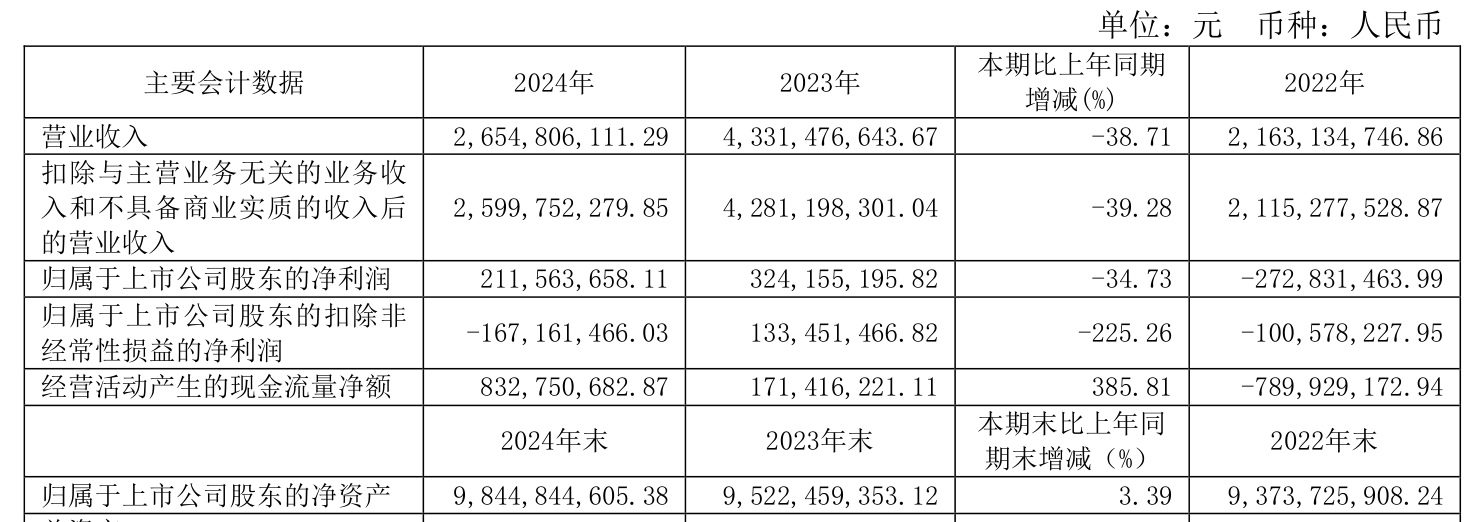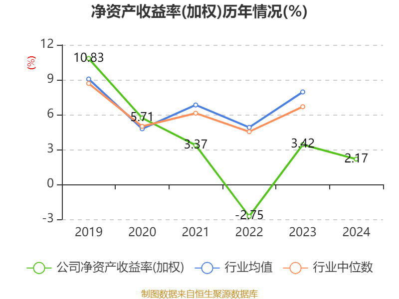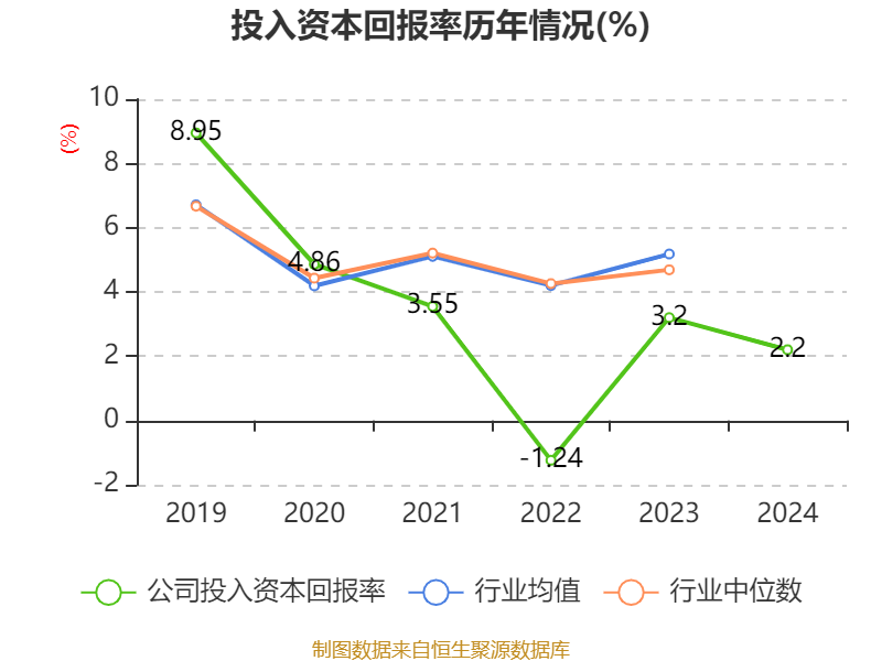 数据显示,2024年公司加权平均净资产收益率为2.17%,较上年同期下降1.25个百分点。公司2024年投入资本回报率为2.2%,较上年同期下降1个百分点。