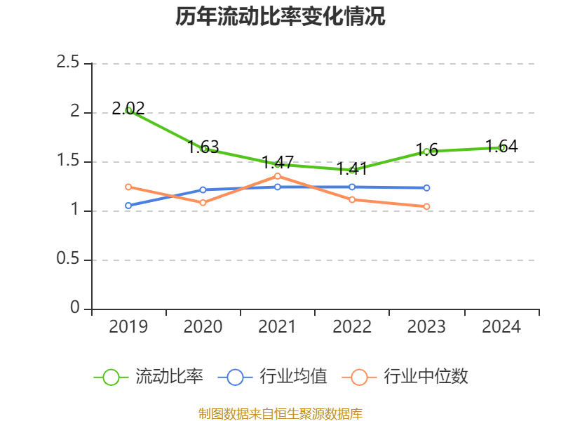 2024年,公司流动比率为1.64,速动比率为1.08。