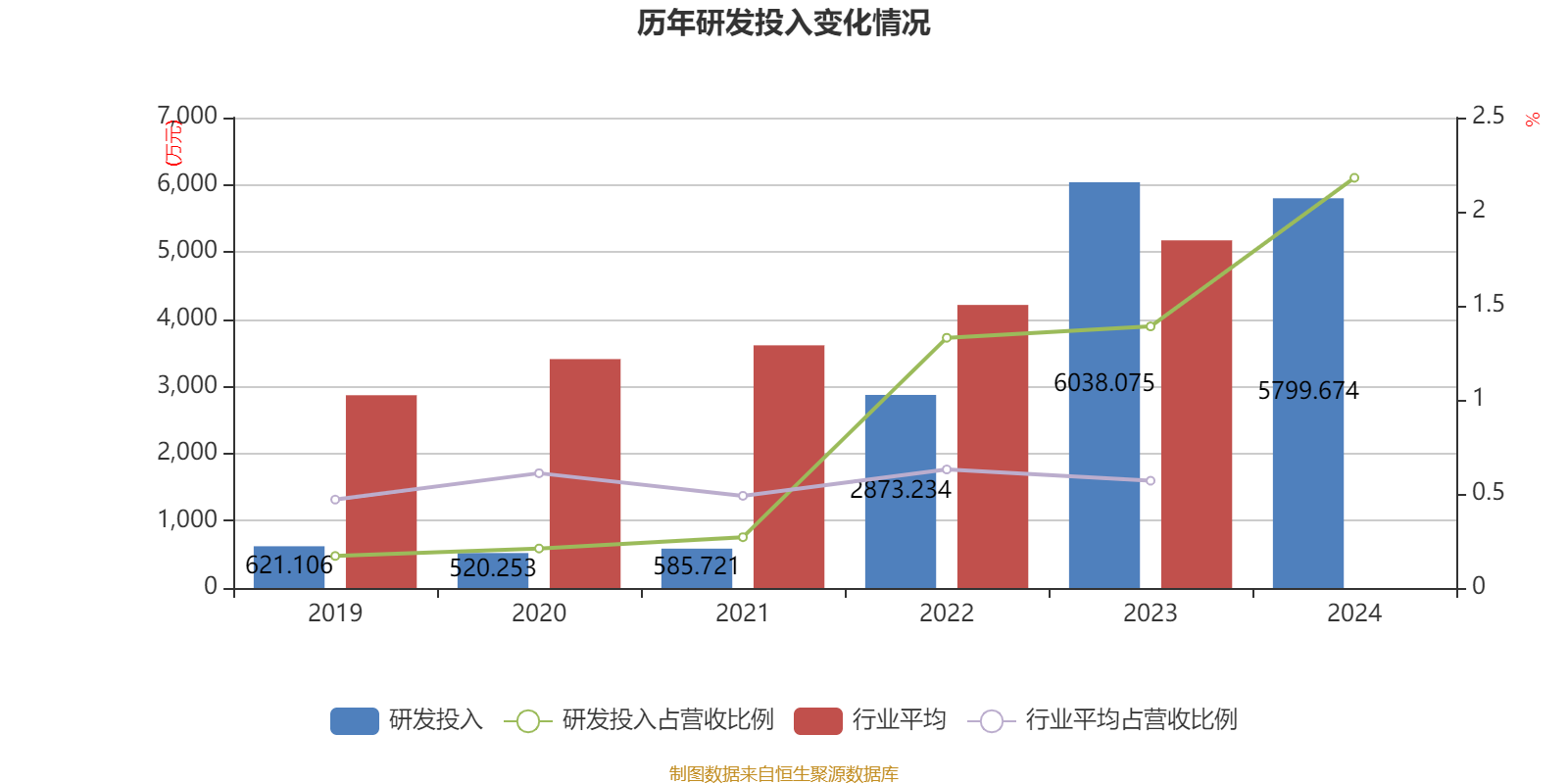 2024年全年,公司研发投入金额为5799.67万元,同比下降3.95%;研发投入占营业收入比例为2.18%,相比上年同期上升0.79个百分点。此外,公司全年研发投入资本化率为0%。
