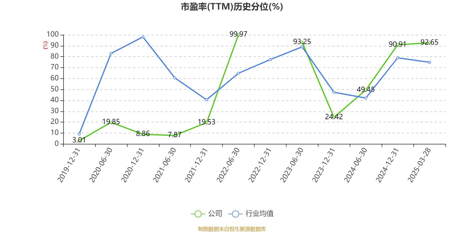 市盈率、市净率为负时,不显示当期分位数,会导致折线图中断。