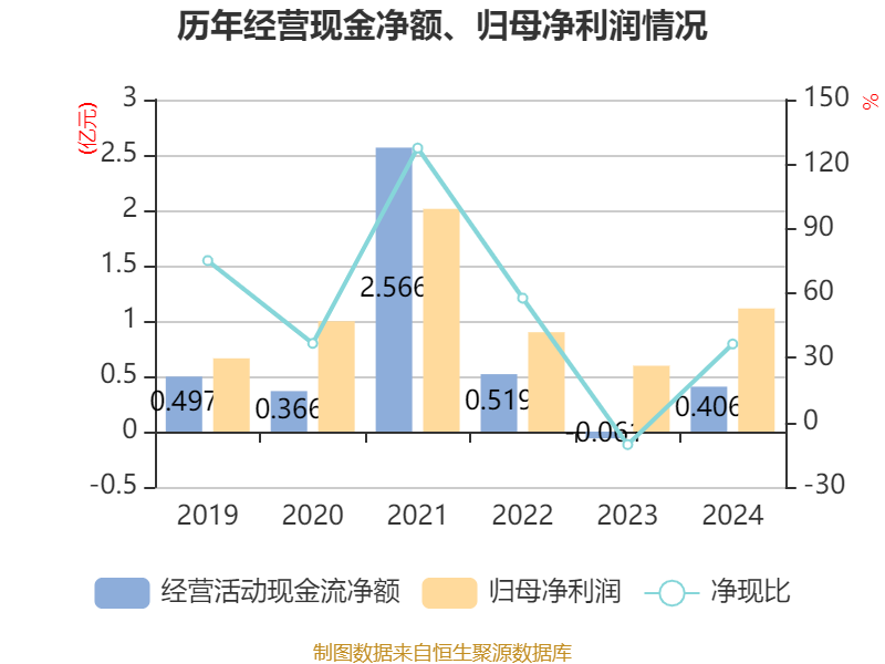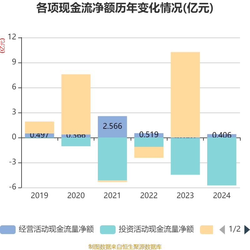 截至2024年,公司经营活动现金流净额为4057.82万元,同比增加4671.46万元;筹资活动现金流净额-311.51万元,同比减少10.29亿元;投资活动现金流净额-5.74亿元,上年同期为-4.41亿元。