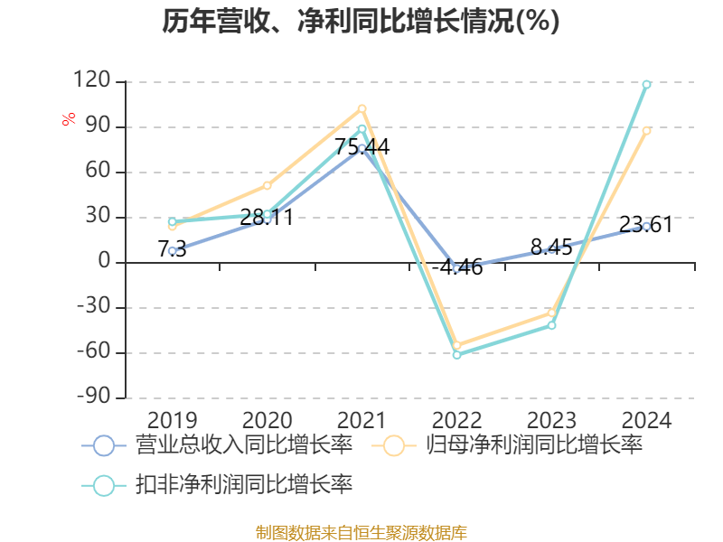 中证智能财讯芯朋微(688508)3月29日披露2024年年度报告。2024年,公司实现营业总收入9.65亿元,同比增长23.61%;归母净利润1.11亿元,同比增长87.18%;扣非净利润7312.2万元,同比增长117.88%;经营活动产生的现金流量净额为4057.82万元,上年同期为-613.64万元;报告期内,芯朋微基本每股收益为0.87元,加权平均净资产收益率为4.52%。公司2024年度分配预案为:拟向全体股东每10股派现4元(含税)。