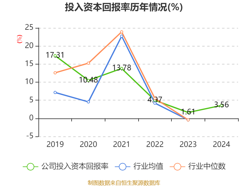 数据显示,2024年公司加权平均净资产收益率为4.52%,较上年同期上升1.24个百分点。公司2024年投入资本回报率为3.56%,较上年同期上升1.95个百分点。