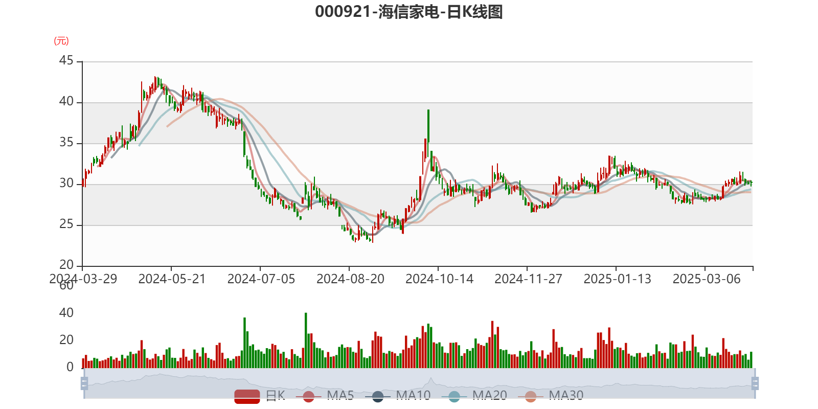 以3月28日收盘价计算,海信家电目前市盈率(TTM)约为12.51倍,市净率(LF)约2.71倍,市销率(TTM)约0.45倍。