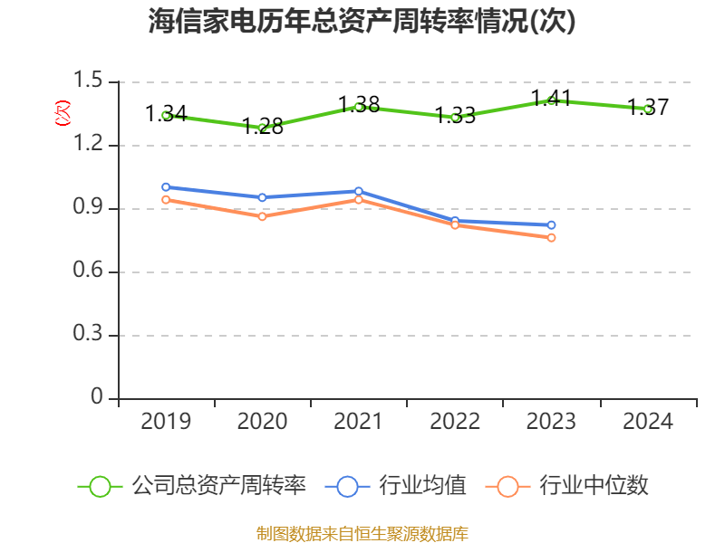 中证智能财讯海信家电(000921)3月29日披露2024年年度报告。2024年,公司实现营业总收入927.46亿元,同比增长8.35%;归母净利润33.48亿元,同比增长17.99%;扣非净利润26.06亿元,同比增长10.65%;经营活动产生的现金流量净额为51.32亿元,同比下降51.64%;报告期内,海信家电基本每股收益为2.46元,加权平均净资产收益率为23.27%。公司2024年度分配预案为:拟向全体股东每10股派现12.3元(含税)。