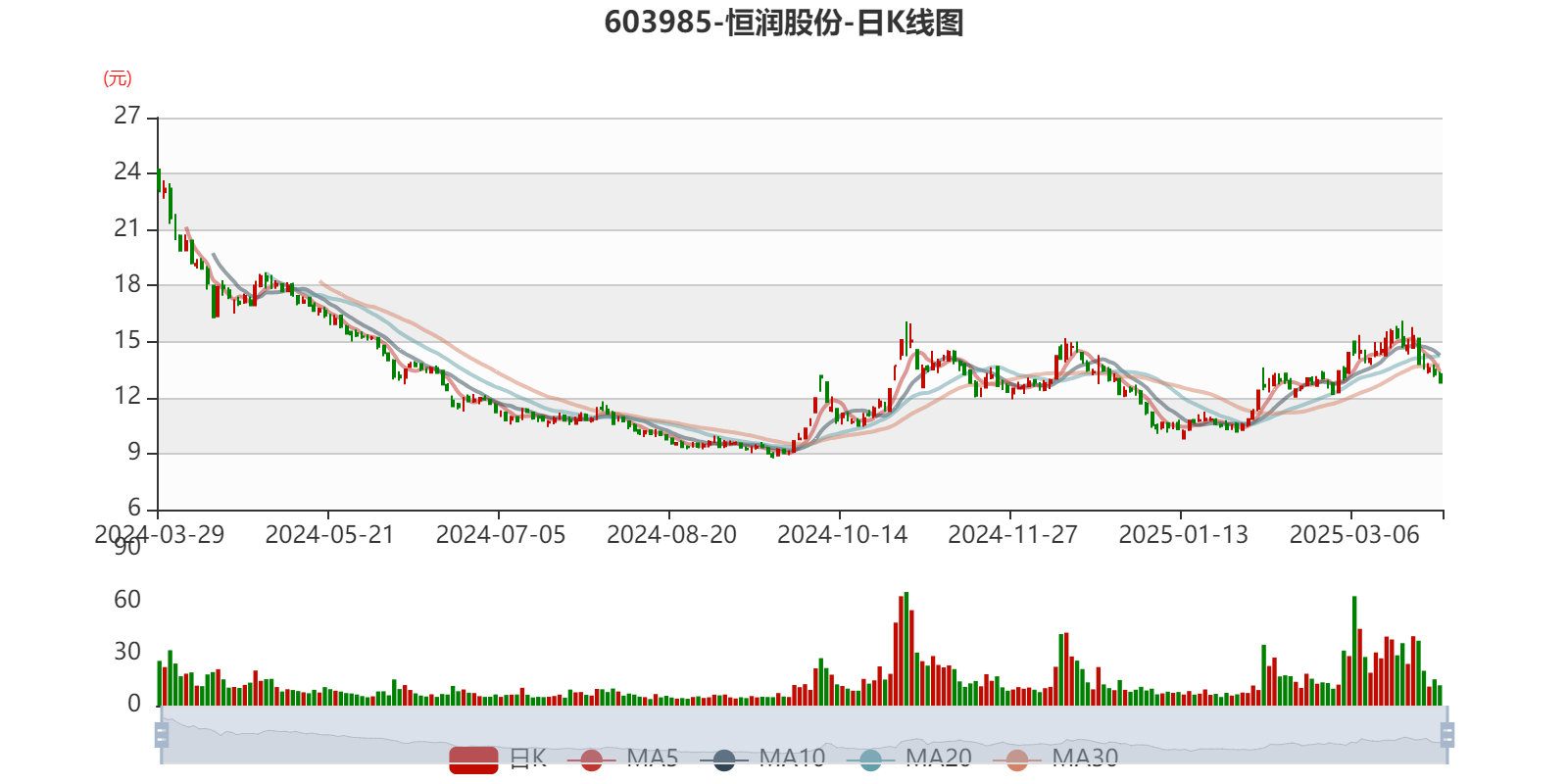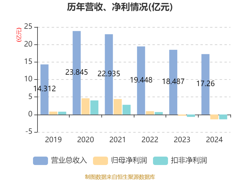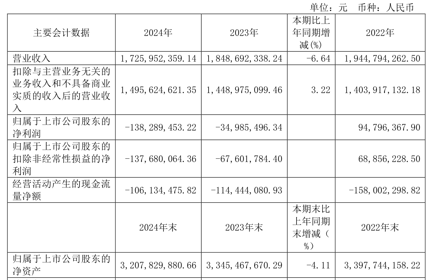 中证智能财讯恒润股份(603985)3月29日披露2024年年度报告。2024年,公司实现营业总收入17.26亿元,同比下降6.64%;归母净利润亏损1.38亿元,上年同期亏损3498.55万元;扣非净利润亏损1.38亿元,上年同期亏损6760.18万元;经营活动产生的现金流量净额为-1.06亿元,上年同期为-1.14亿元;报告期内,恒润股份基本每股收益为-0.3137元,加权平均净资产收益率为-4.22%。
