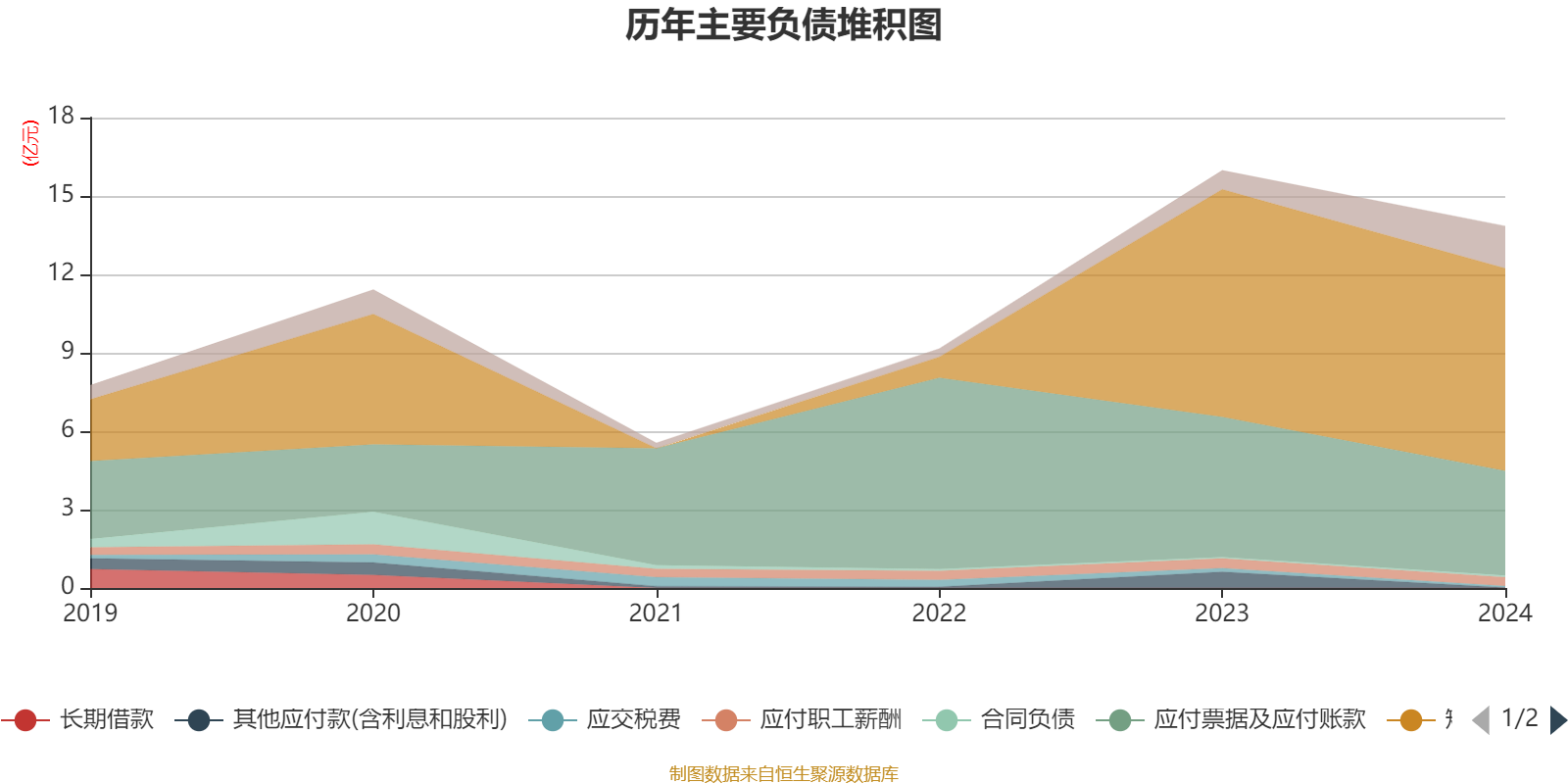 负债重大变化方面,截至2024年末,公司应付票据及应付账款较上年末减少25.47%,占公司总资产比重下降2.14个百分点;长期应付款合计占公司总资产的1.36%,上年末为0;其他应付款(含利息和股利)较上年末减少97.39%,占公司总资产比重下降1.21个百分点;一年内到期的非流动负债较上年末增加3014.51%,占公司总资产比重上升0.82个百分点。