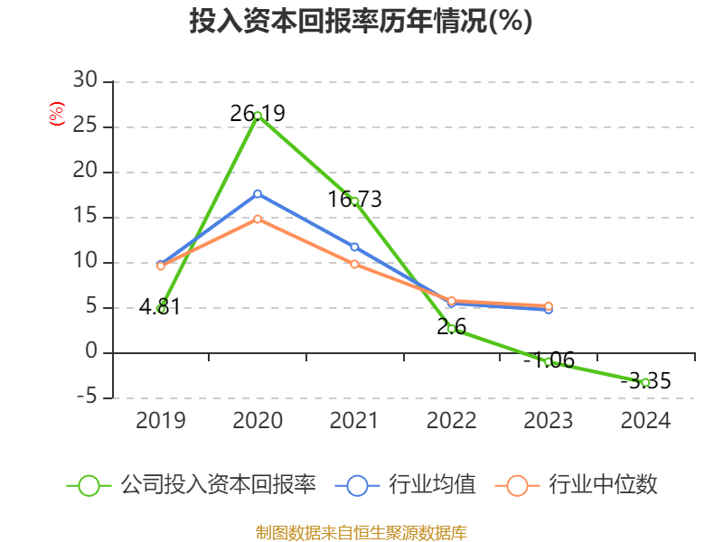 数据显示,2024年公司加权平均净资产收益率为-4.22%,较上年同期下降3.18个百分点。公司2024年投入资本回报率为-3.35%,较上年同期下降2.29个百分点。