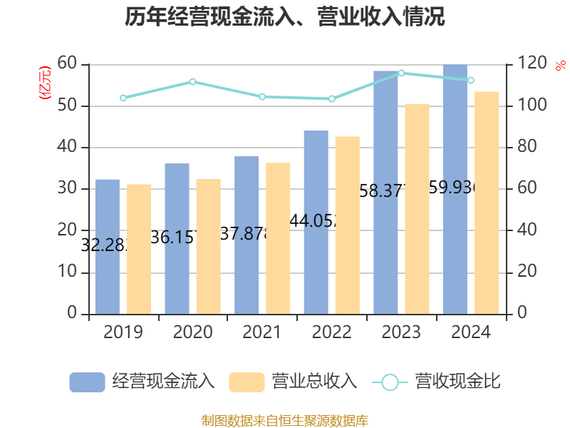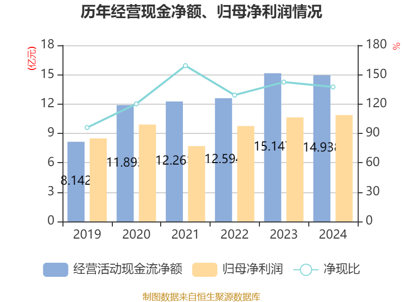 截至2024年,公司经营活动现金流净额为14.94亿元,同比下降1.38%;筹资活动现金流净额-7.67亿元,同比增加1327.37万元;投资活动现金流净额-15.09亿元,上年同期为-14.22亿元。