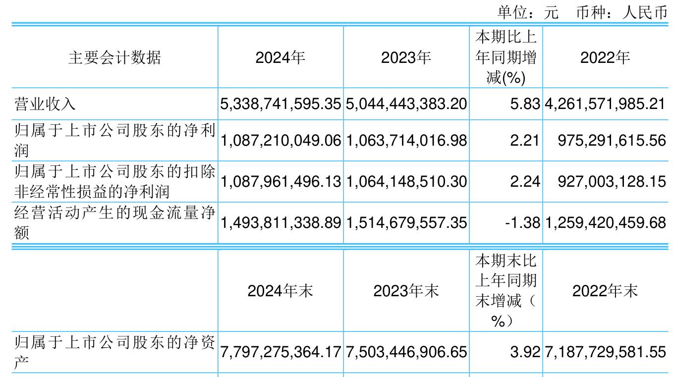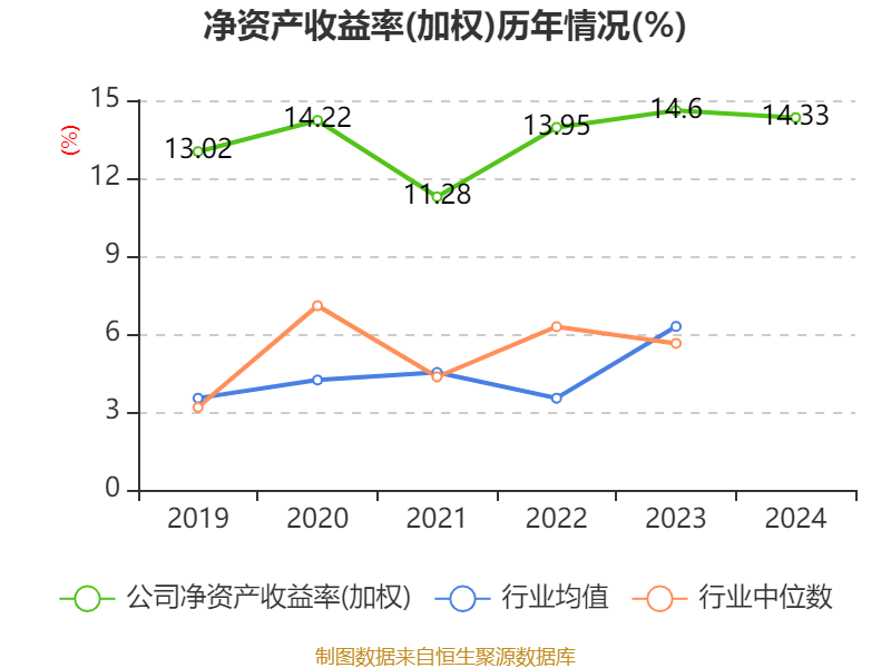 数据显示,2024年公司加权平均净资产收益率为14.33%,较上年同期下降0.27个百分点。公司2024年投入资本回报率为12.75%,较上年同期上升0.08个百分点。