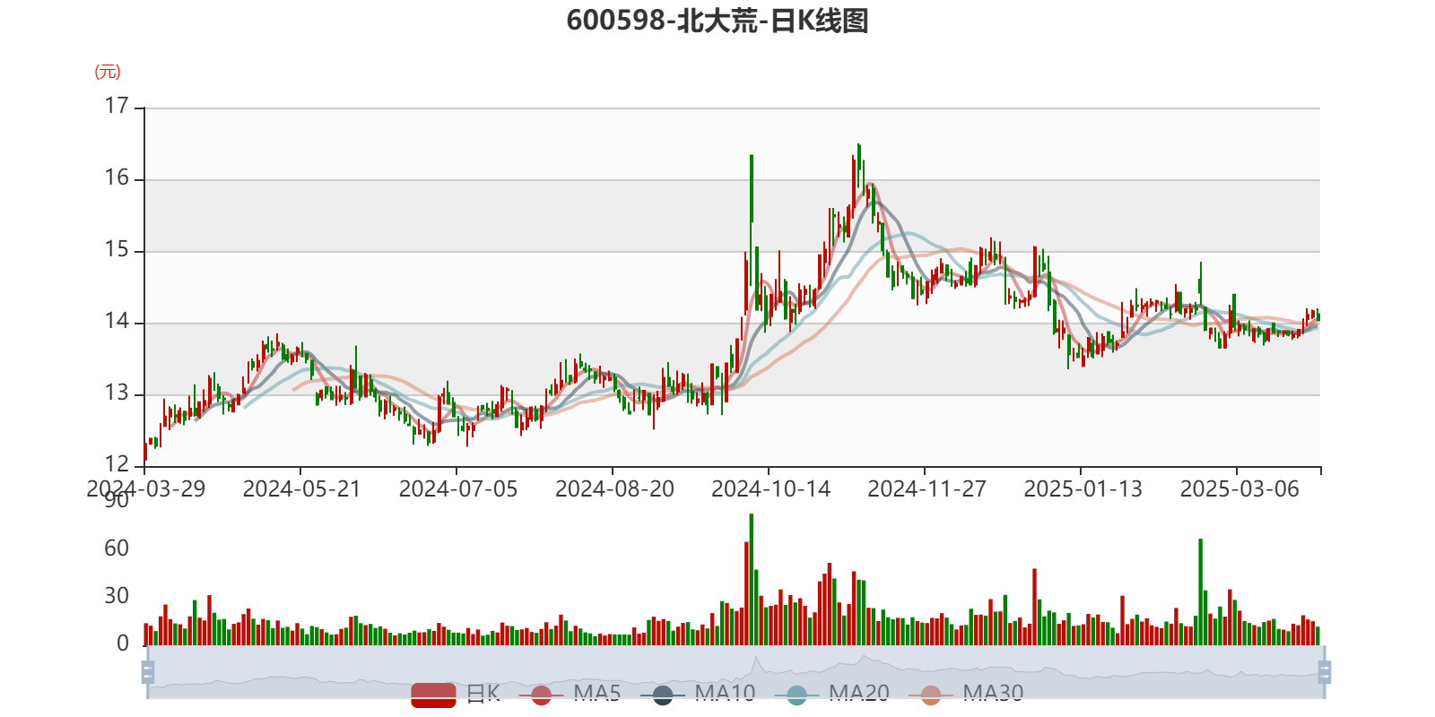 以3月28日收盘价计算,北大荒目前市盈率(TTM)约为22.94倍,市净率(LF)约3.2倍,市销率(TTM)约4.67倍。
