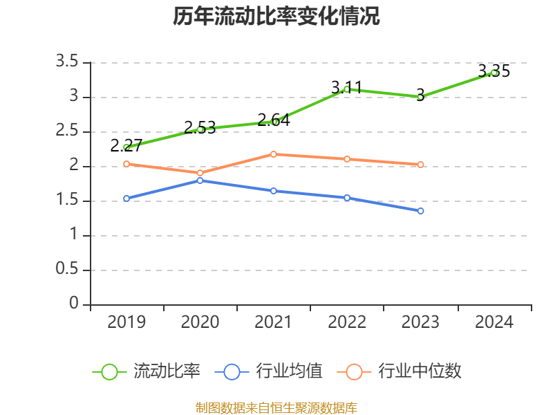 2024年,公司流动比率为3.35,速动比率为3.22。