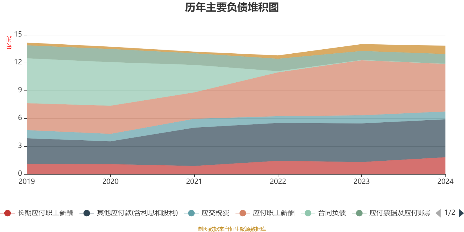 负债重大变化方面,截至2024年末,公司应付职工薪酬较上年末减少13.6%,占公司总资产比重下降1.11个百分点;短期借款占公司总资产的0.54%,上年末为0;长期应付职工薪酬较上年末增加40.08%,占公司总资产比重上升0.53个百分点;其他应付款(含利息和股利)较上年末减少1.84%,占公司总资产比重下降0.23个百分点。