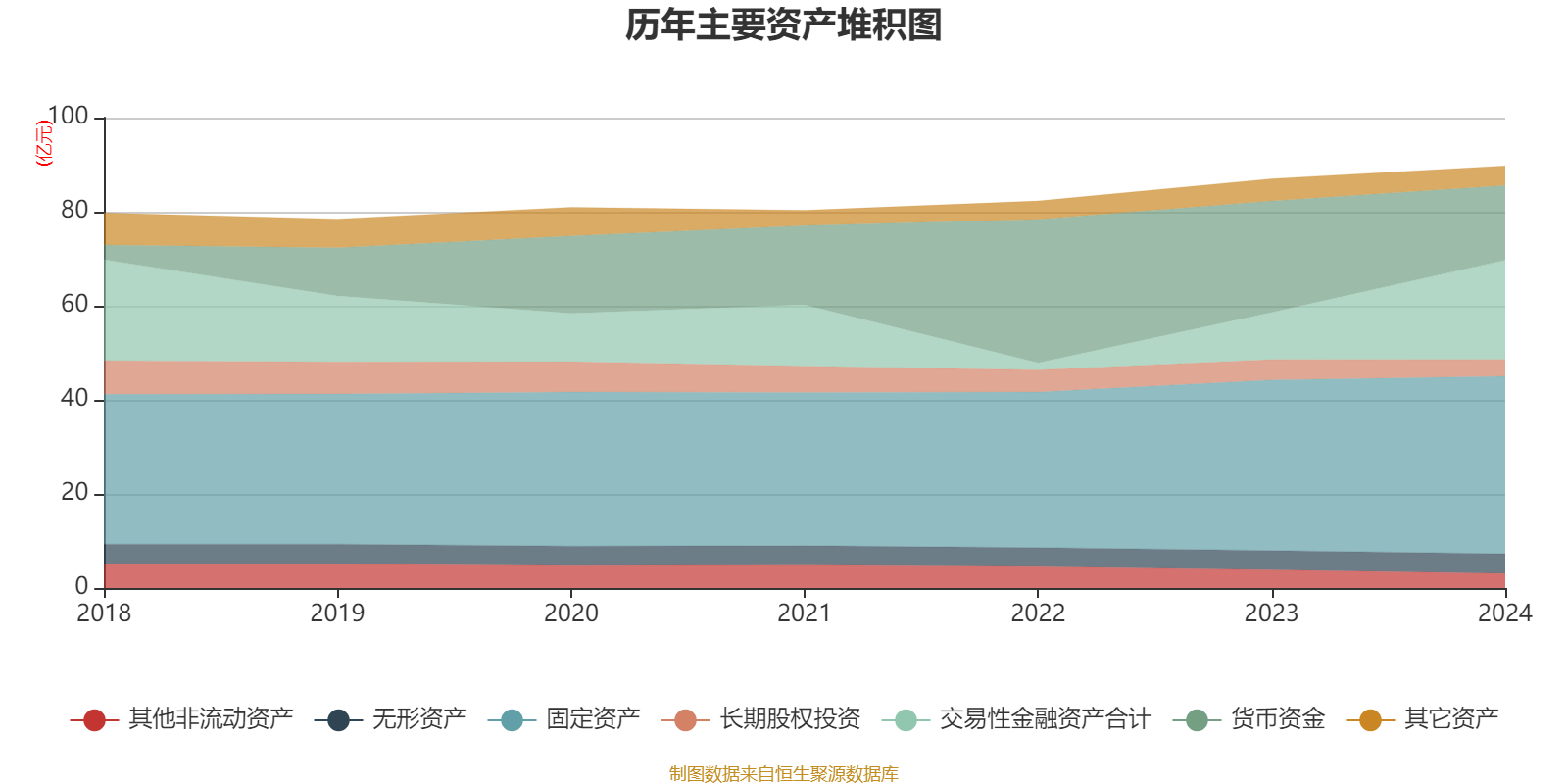 资产重大变化方面,截至2024年末,公司交易性金融资产合计较上年末增加111%,占公司总资产比重上升12.02个百分点;货币资金较上年末减少33.07%,占公司总资产比重下降9.57个百分点;存货较上年末减少34.76%,占公司总资产比重下降1.03个百分点;长期股权投资较上年末减少16.65%,占公司总资产比重下降0.96个百分点。