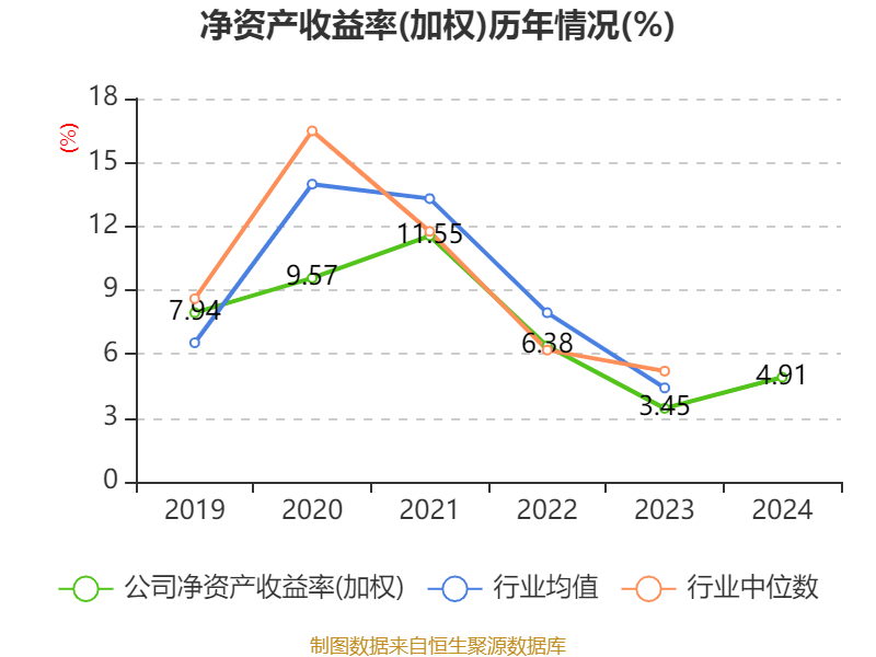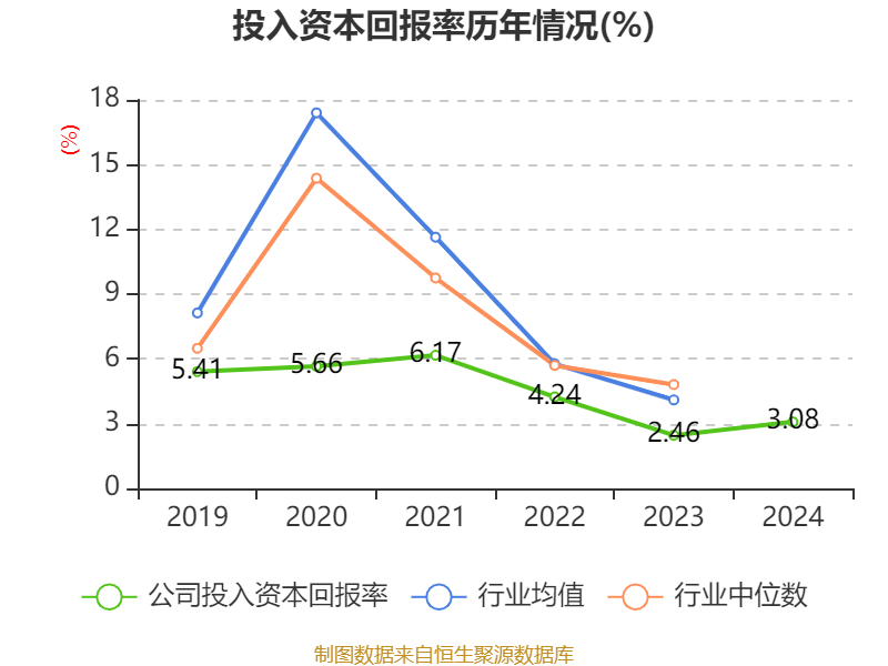 数据显示,2024年公司加权平均净资产收益率为4.91%,较上年同期上升1.46个百分点。公司2024年投入资本回报率为3.08%,较上年同期上升0.62个百分点。