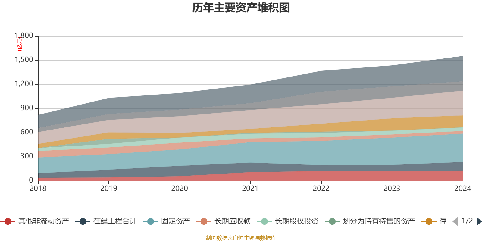 资产重大变化方面,截至2024年末,公司货币资金较上年末减少18.43%,占公司总资产比重下降2.44个百分点;应收票据及应收账款较上年末增加20.66%,占公司总资产比重上升2.05个百分点;在建工程合计较上年末增加36.32%,占公司总资产比重上升1.41个百分点;存货较上年末减少2.82%,占公司总资产比重下降1.08个百分点。
