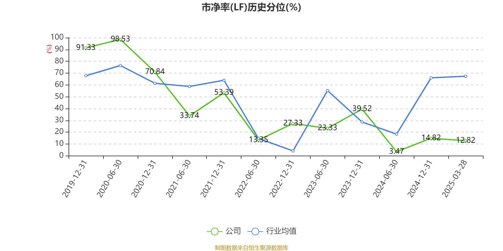 市盈率、市净率为负时,不显示当期分位数,会导致折线图中断。