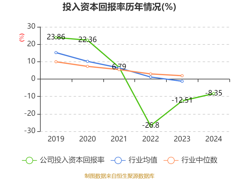数据显示,2024年公司加权平均净资产收益率为-9.71%,较上年同期上升7.48个百分点。公司2024年投入资本回报率为-8.35%,较上年同期上升4.16个百分点。