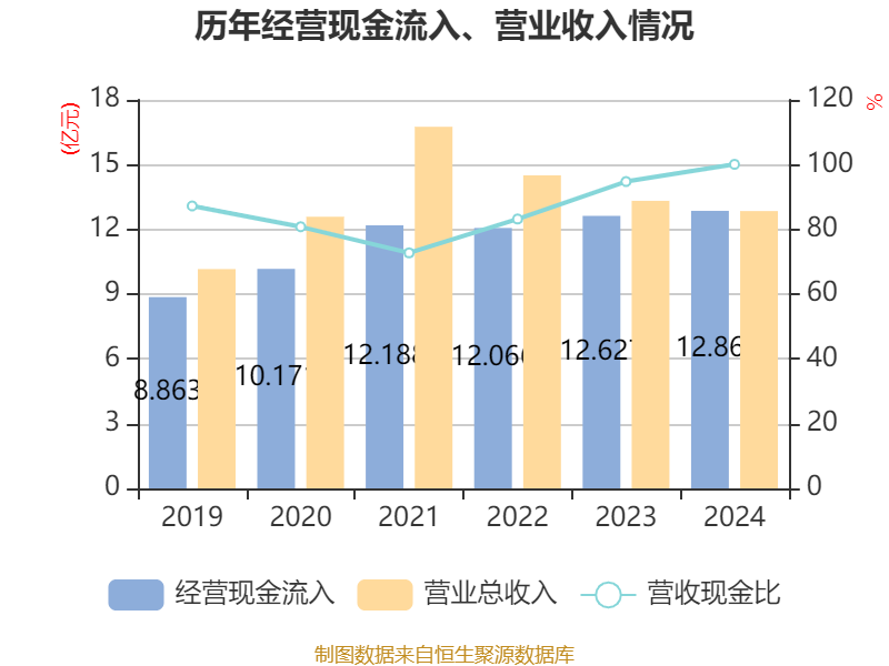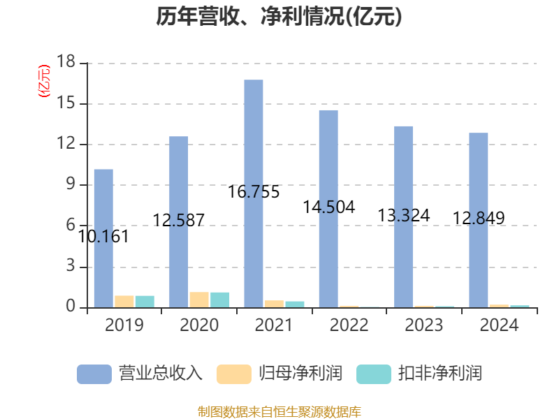 中证智能财讯集泰股份(002909)3月29日披露2024年年度报告。2024年,公司实现营业总收入12.85亿元,同比下降3.56%;归母净利润1928万元,同比增长88.27%;扣非净利润1425.36万元,同比增长99.59%;经营活动产生的现金流量净额为3.1亿元,同比增长69.87%;报告期内,集泰股份基本每股收益为0.049元,加权平均净资产收益率为1.96%。公司2024年度分配预案为:拟向全体股东每10股派现1元(含税)。