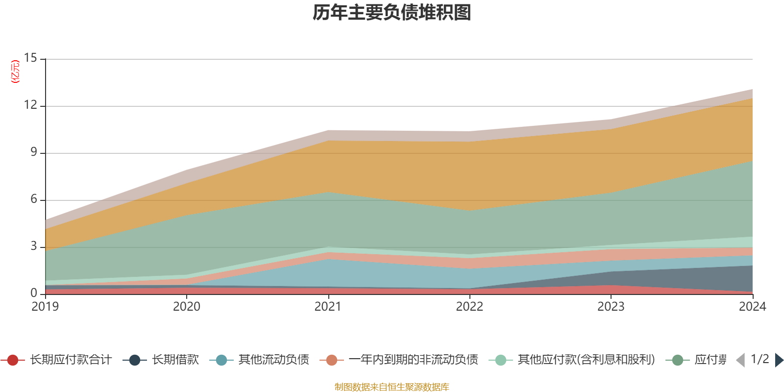 负债重大变化方面,截至2024年末,公司应付票据及应付账款较上年末增加44.53%,占公司总资产比重上升4.43个百分点;长期借款较上年末增加93%,占公司总资产比重上升3.01个百分点;短期借款较上年末减少1.25%,占公司总资产比重下降2.85个百分点;长期应付款合计较上年末减少75.26%,占公司总资产比重下降2.25个百分点。