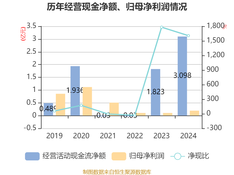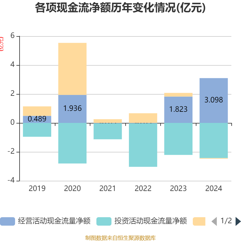 截至2024年,公司经营活动现金流净额为3.1亿元,同比增长69.87%;筹资活动现金流净额-451.4万元,同比减少2974.94万元;投资活动现金流净额-2.43亿元,上年同期为-2.21亿元。