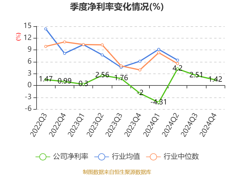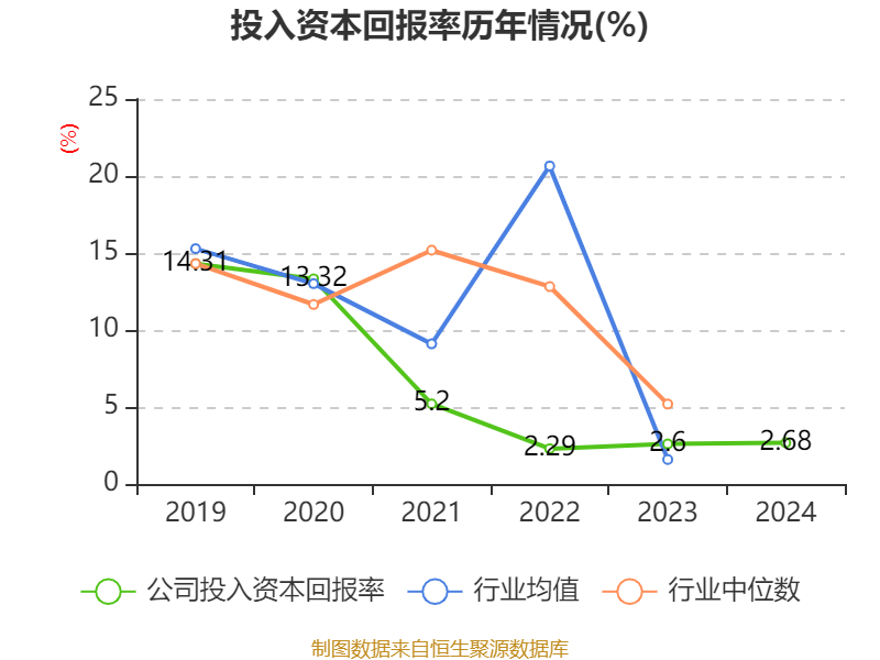 数据显示,2024年公司加权平均净资产收益率为1.96%,较上年同期上升0.77个百分点。公司2024年投入资本回报率为2.68%,较上年同期上升0.08个百分点。