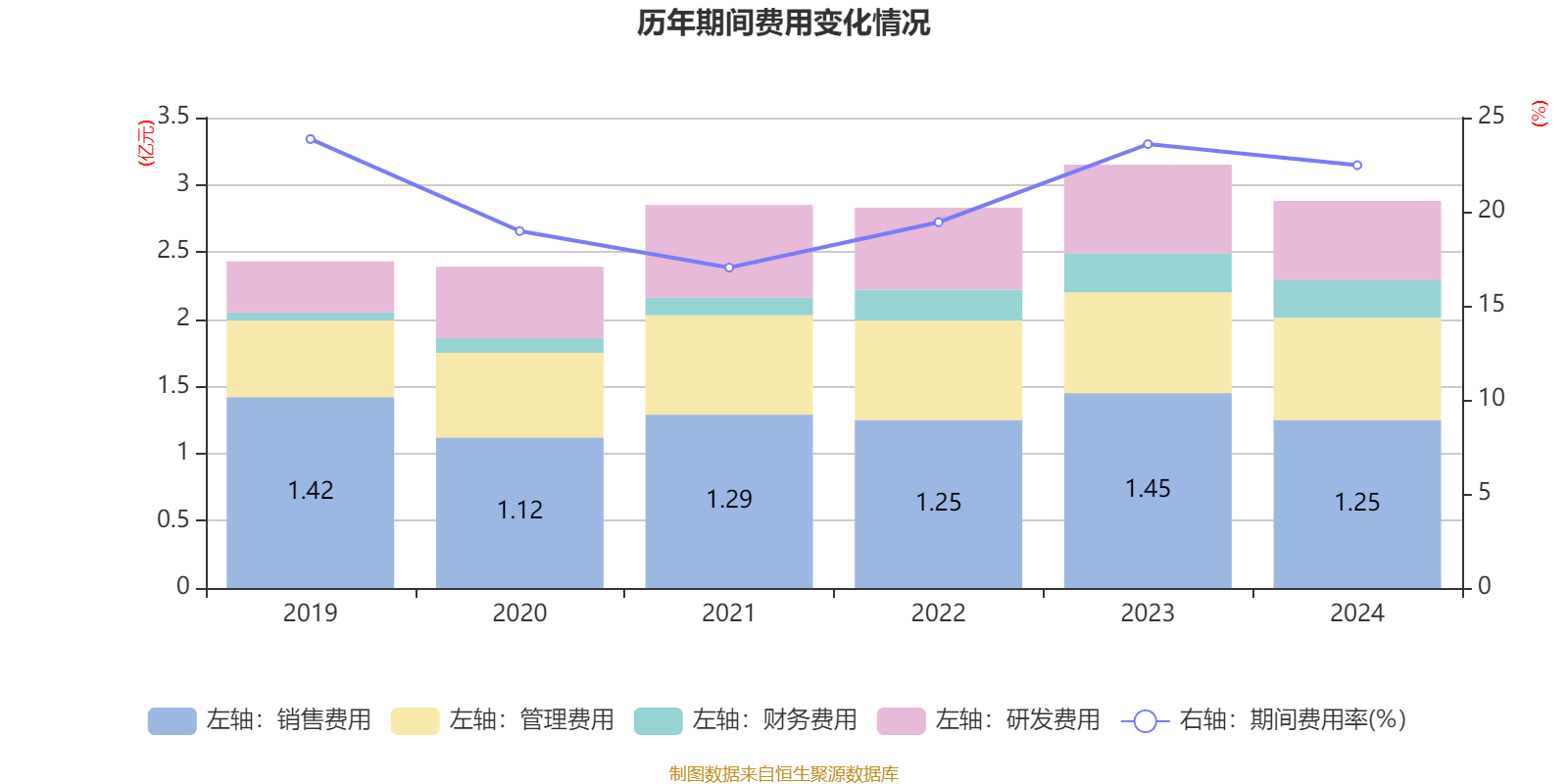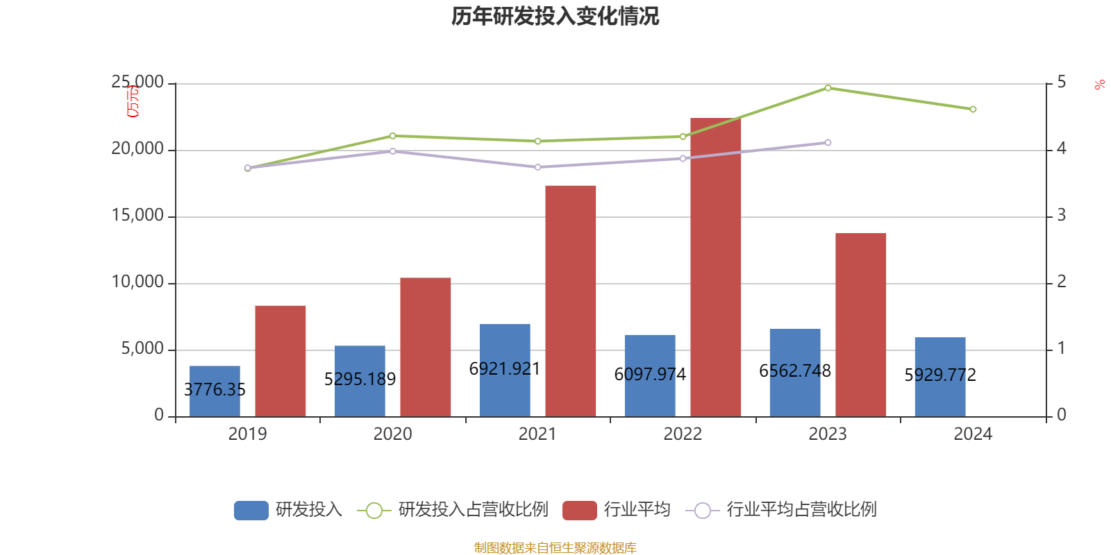 2024年全年,公司研发投入金额为5929.77万元,同比下降9.64%;研发投入占营业收入比例为4.61%,相比上年同期下降0.32个百分点。此外,公司全年研发投入资本化率为0%。