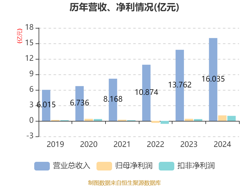 中证智能财讯美力科技(300611)3月29日披露2024年年度报告。2024年,公司实现营业总收入16.04亿元,同比增长16.52%;归母净利润1.07亿元,同比增长162.15%;扣非净利润9770.27万元,同比增长178.59%;经营活动产生的现金流量净额为1.34亿元,同比增长30.42%;报告期内,美力科技基本每股收益为0.51元,加权平均净资产收益率为10.27%。公司2024年度分配预案为:拟向全体股东每10股派现1.2元(含税)。