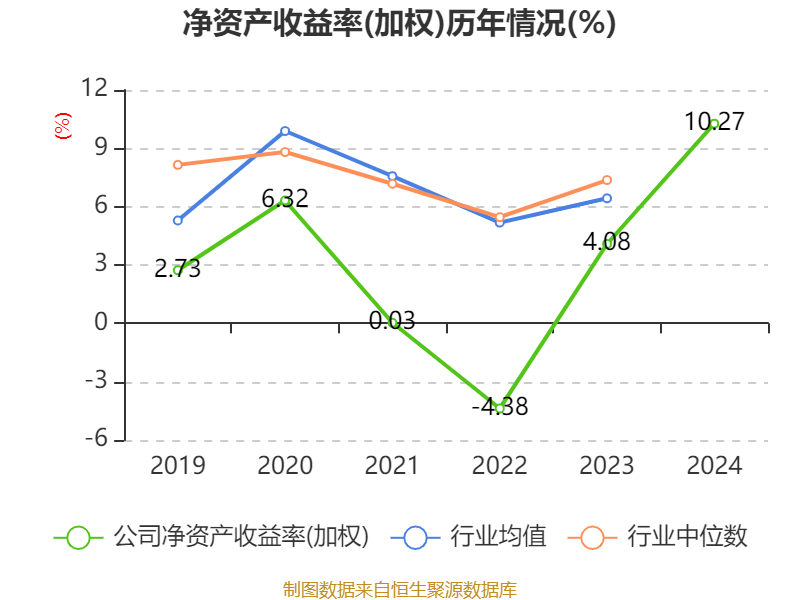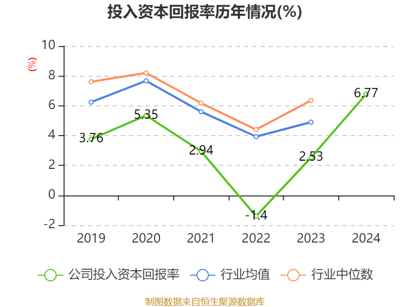 数据显示,2024年公司加权平均净资产收益率为10.27%,较上年同期上升6.19个百分点。公司2024年投入资本回报率为6.77%,较上年同期上升4.24个百分点。