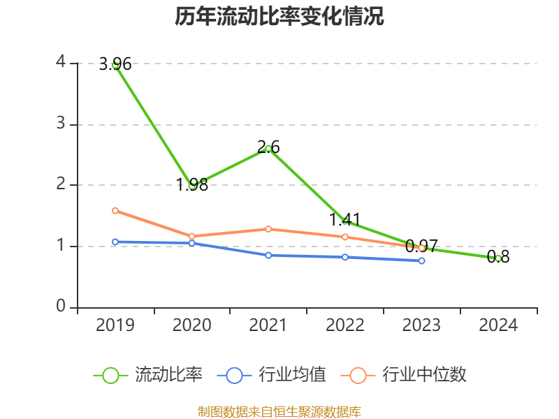 2024年,公司流动比率为0.8,速动比率为0.44。