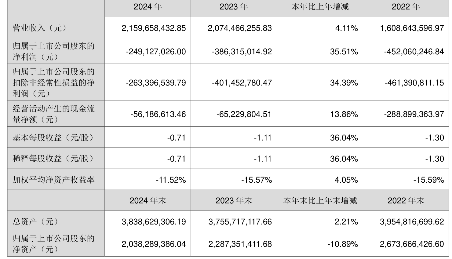 数据显示,2024年公司加权平均净资产收益率为-11.52%,较上年同期上升4.05个百分点。公司2024年投入资本回报率为-6.44%,较上年同期上升4.43个百分点。