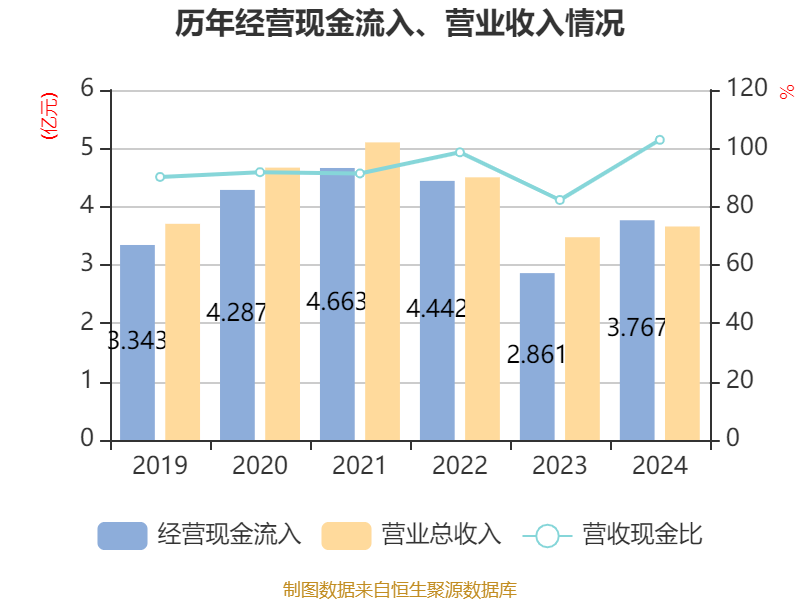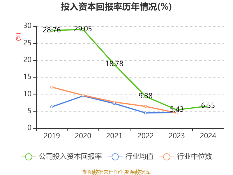 数据显示,2024年公司加权平均净资产收益率为6.56%,较上年同期上升1.1个百分点。公司2024年投入资本回报率为6.55%,较上年同期上升1.12个百分点。