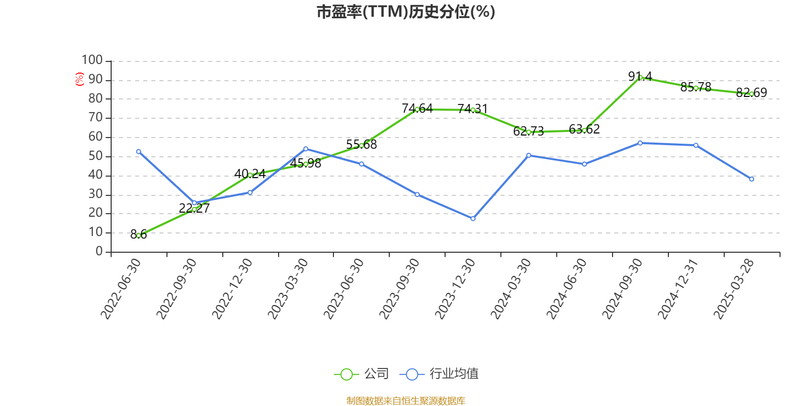 市盈率、市净率为负时,不显示当期分位数,会导致折线图中断。