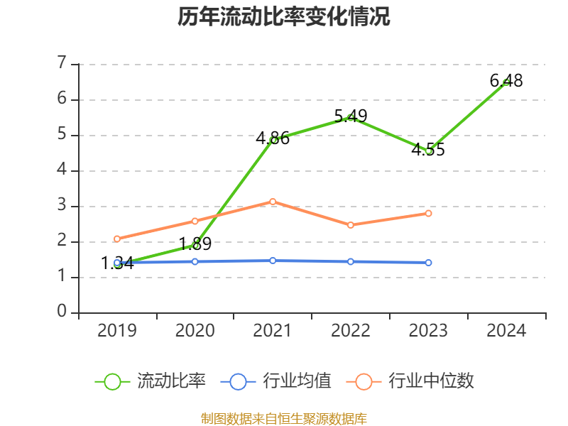 2024年,公司流动比率为6.48,速动比率为5.81。