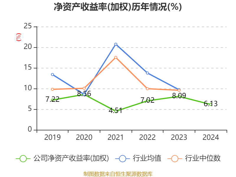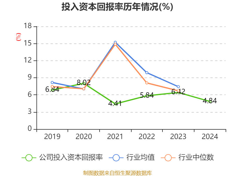 数据显示,2024年公司加权平均净资产收益率为6.13%,较上年同期下降1.96个百分点。公司2024年投入资本回报率为4.84%,较上年同期下降1.58个百分点。